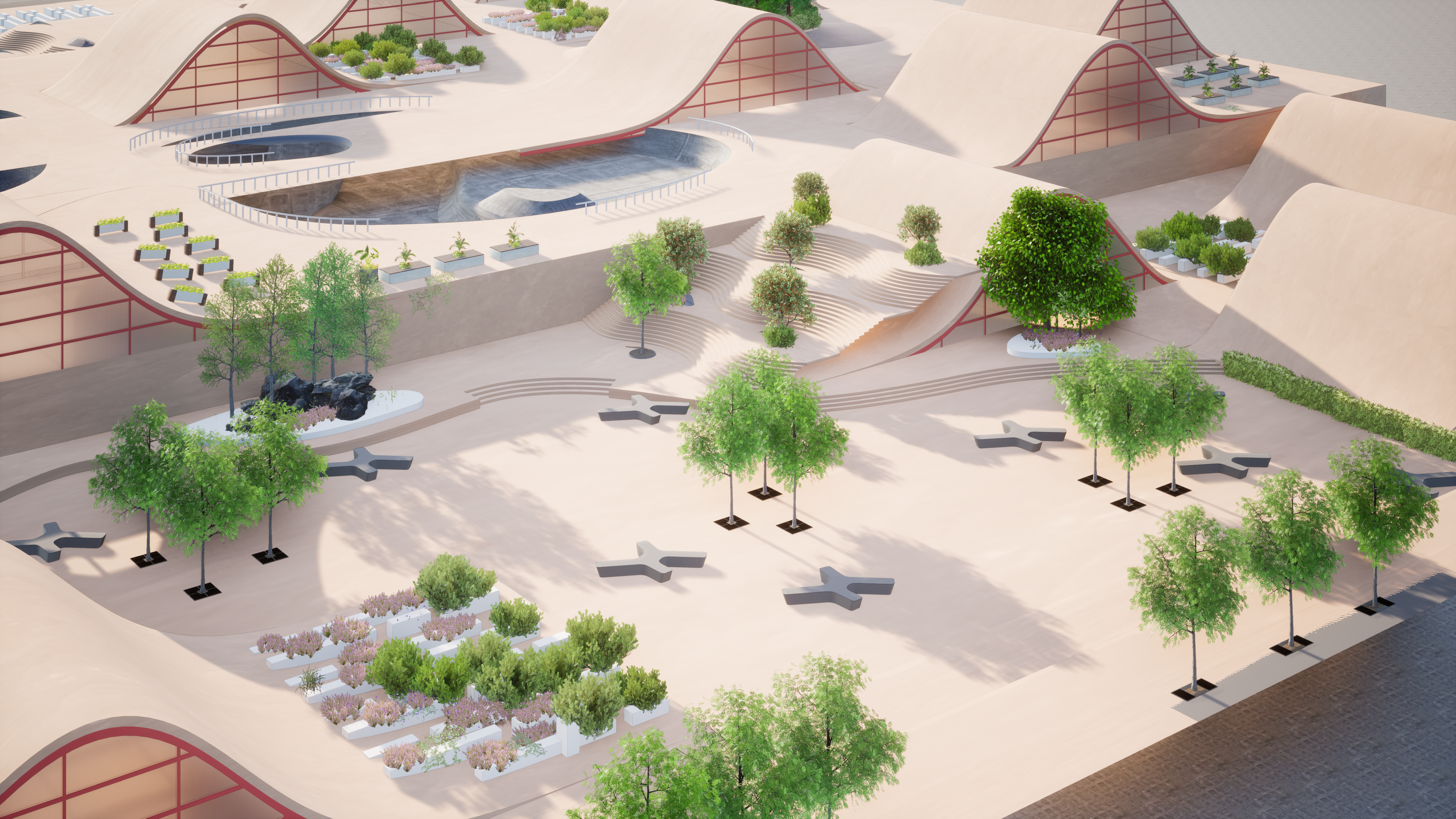 The development is proposed for the city of Chicago, Illinois that has transition plans towards clean energy sources. The project hosts processing units, office spaces and community garden spaces. Further it invites the community to use the facility as a skateboard park. This feature immensely helped inform the playful form of the structure.